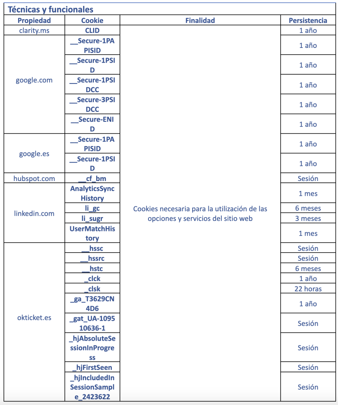 1. Datos identificativos: La presente política de cookies viene a complementar la política de privacidad del sitio web https://www.okticket.es/ (en adelante, el Sitio Web).